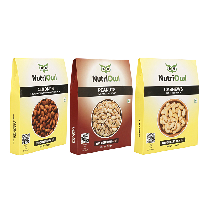 NutriOwl Dry Fruit Combo combines the unique flavours and nutritional benefits of these three premium varieties. Whether you enjoy them as a quick snack on their own, sprinkle them over salads or yogurt, or incorporate them into your baking and cooking, this combo provides a diverse range of culinary possibilities.