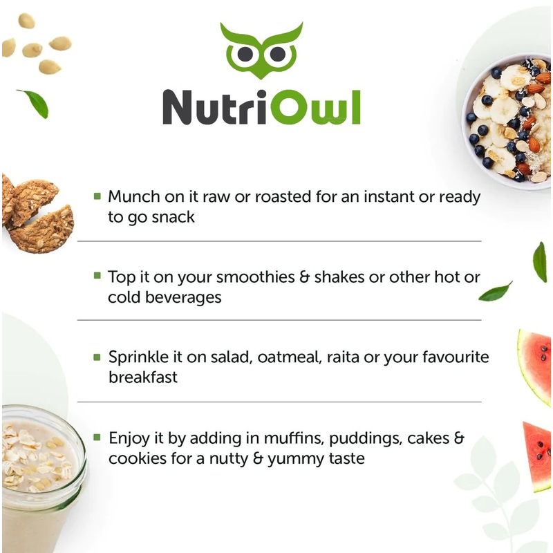 NutriOwl Super Seeds Combo brings together the goodness of Pumpkin, Sunflower, and Watermelon Seeds, providing you with a convenient and versatile way to enjoy their benefits. Add them to your salads, sprinkle them on yogurt or oatmeal, blend them into smoothies, or simply enjoy them as a healthy snack.